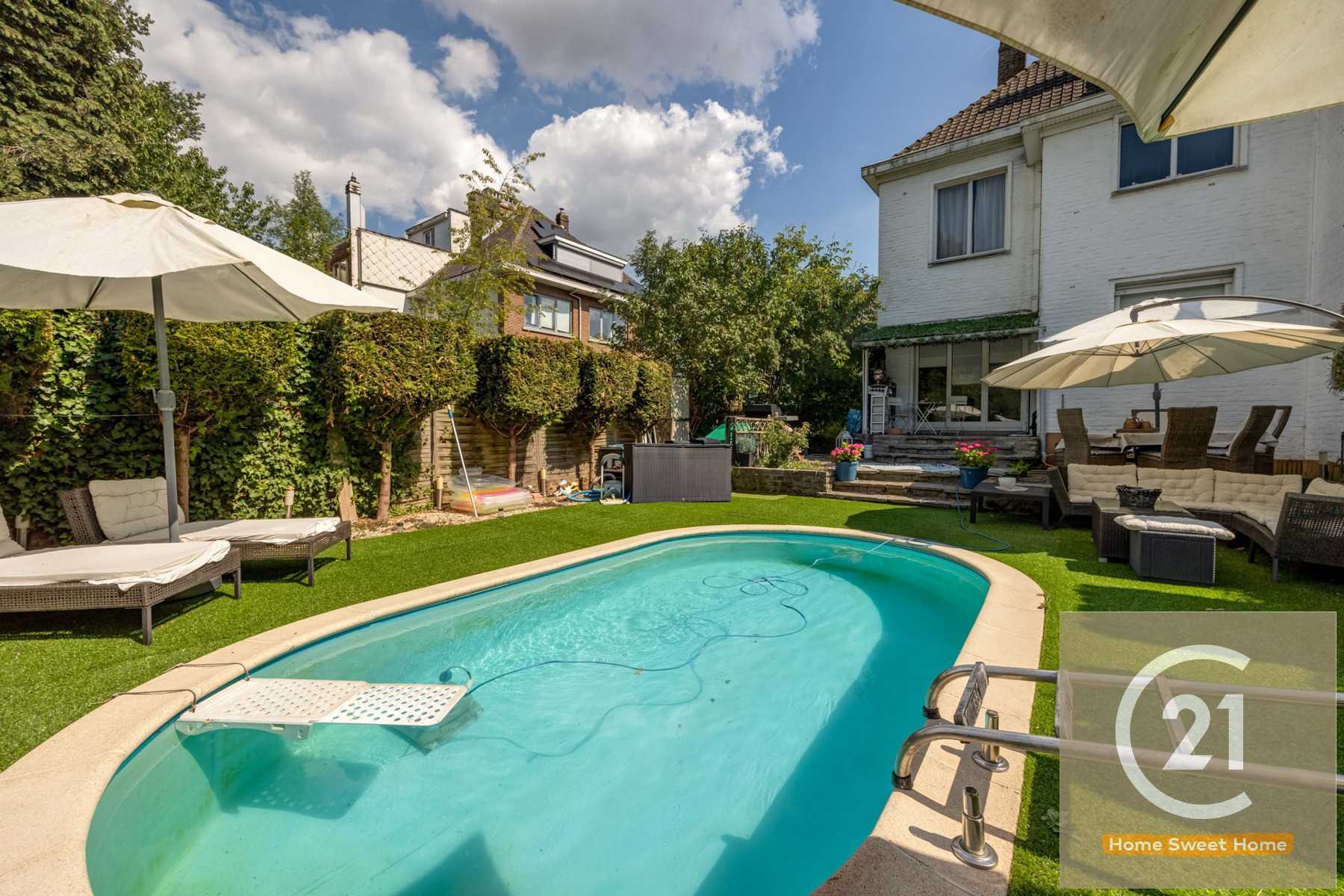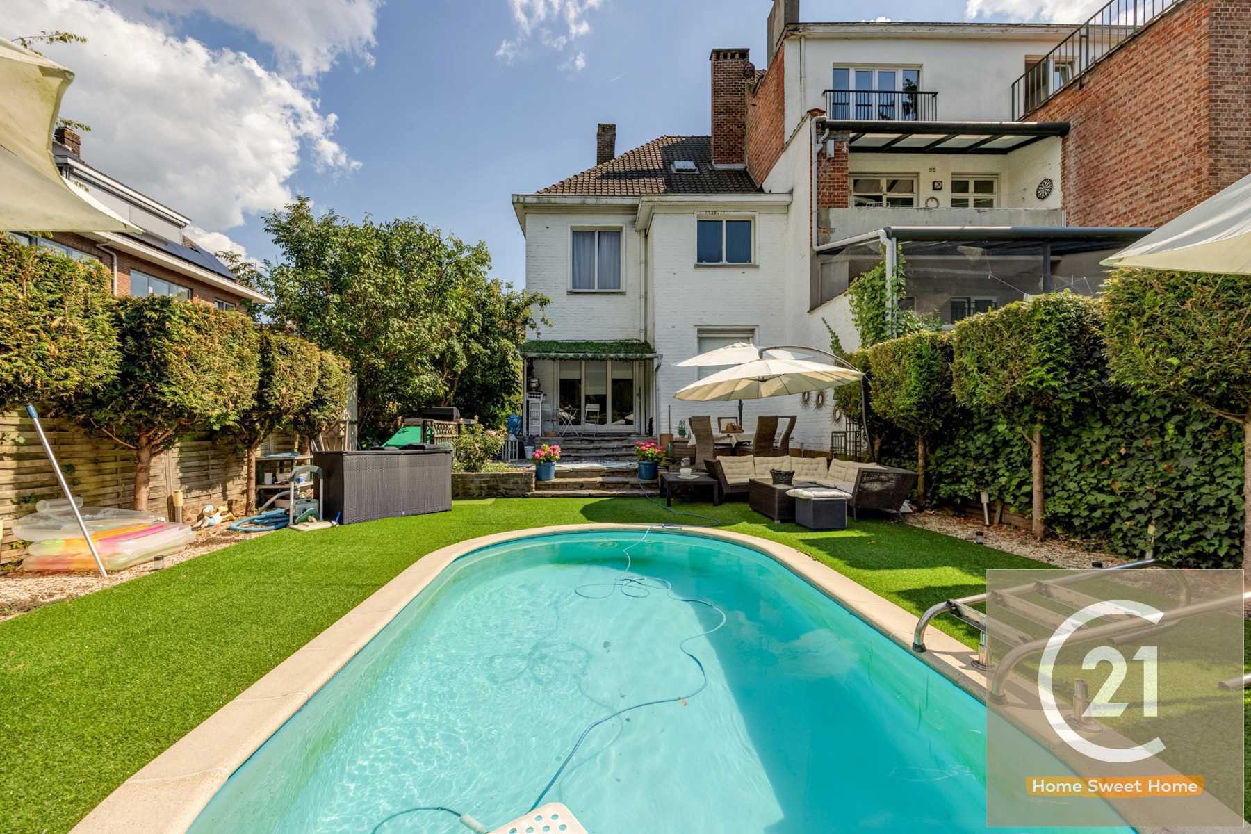 À la recherche d'une maison spacieuse et polyvalente avec beaucoup de potentiel ? Cette charmante maison bel-étage trois façades, idéalement située, est exactement ce qu’il vous faut. Elle dispose de trois chambres à coucher complètes et offre, grâce à un vaste grenier de pas moins de 80 m², la possibilité de créer jusqu’à trois pièces supplémentaires — parfait pour une grande famille, un espace de loisirs ou un bureau à domicile. Au premier étage, vous trouverez un espace de vie lumineux et généreux, composé d’un salon confortable et d’une salle à manger. La cuisine entièrement équipée donne un accès direct au jardin. Ce jardin est un véritable atout, avec une terrasse bien entretenue et une piscine privée où vous pourrez pleinement profiter des journées ensoleillées en toute tranquillité. En plus de sa qualité de vie, cette maison offre de nombreux avantages pratiques : un grand garage pouvant accueillir deux voitures et une allée permettant de stationner deux véhicules supplémentaires. Située dans un quartier résidentiel agréable, cette propriété combine espace, confort et potentiel à la perfection. Une opportunité idéale pour les familles ou les personnes à la recherche d’une maison avec possibilités d’agrandissement.