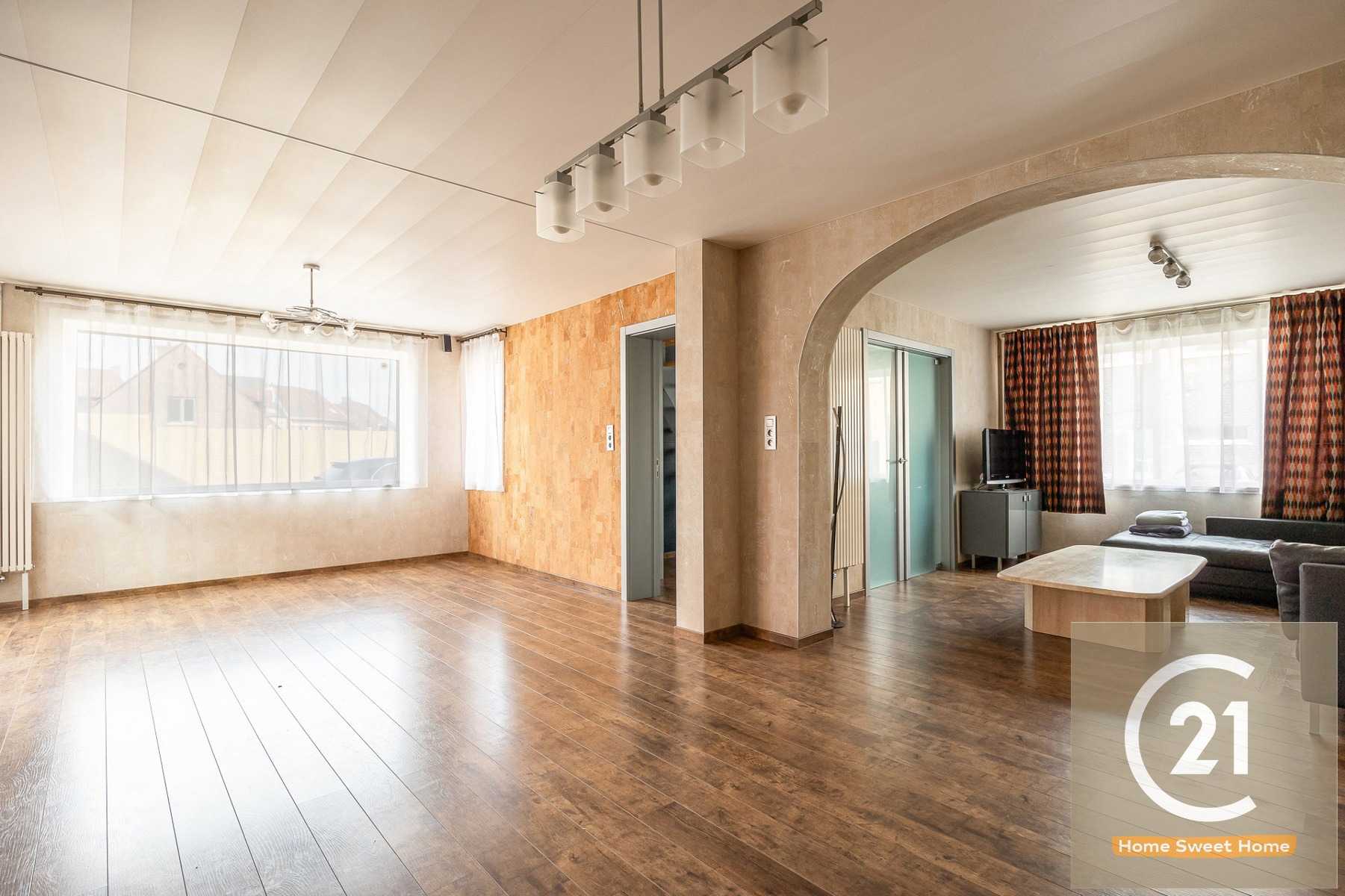 Bij binnenkomst wordt u verwelkomd door een ruime inkomhal met trap naar de verdiepingen. De begane grond beschikt over een gezellige eetkamer met zicht op het zonnige terras en het tuintje (zon van 12 tot 18 uur), een stijlvolle salon en een traphal met kwaliteitsvolle laminaat. De keuken is volledig uitgerust met een gasfornuis, ingebouwde koelkast. Aansluitend bevindt zich een grote berging en de indrukwekkende loods, bestaande uit vier aparte ruimtes en toegankelijk via een hoge garagepoort, geschikt voor vrachtvoertuigen.