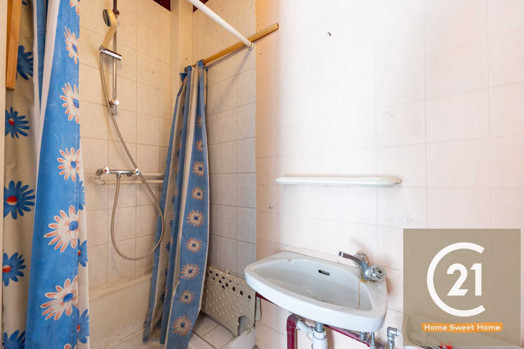 Via de privatieve inkomhal op het gelijkvloers komt u binnen in een verzorgde entree met douche en trap naar de praktische kelderruimte. Op de eerste verdieping bevindt zich de lichtrijke woonkamer, een ruime slaapkamer van ongeveer 18m² en een extra kamer van 6m² die perfect dienst kan doen als babykamer, dressing of thuiskantoor. De keuken biedt directe toegang tot een zonnig terras van maar liefst 16m² – een ideale plek om tot rust te komen of gasten te ontvangen.