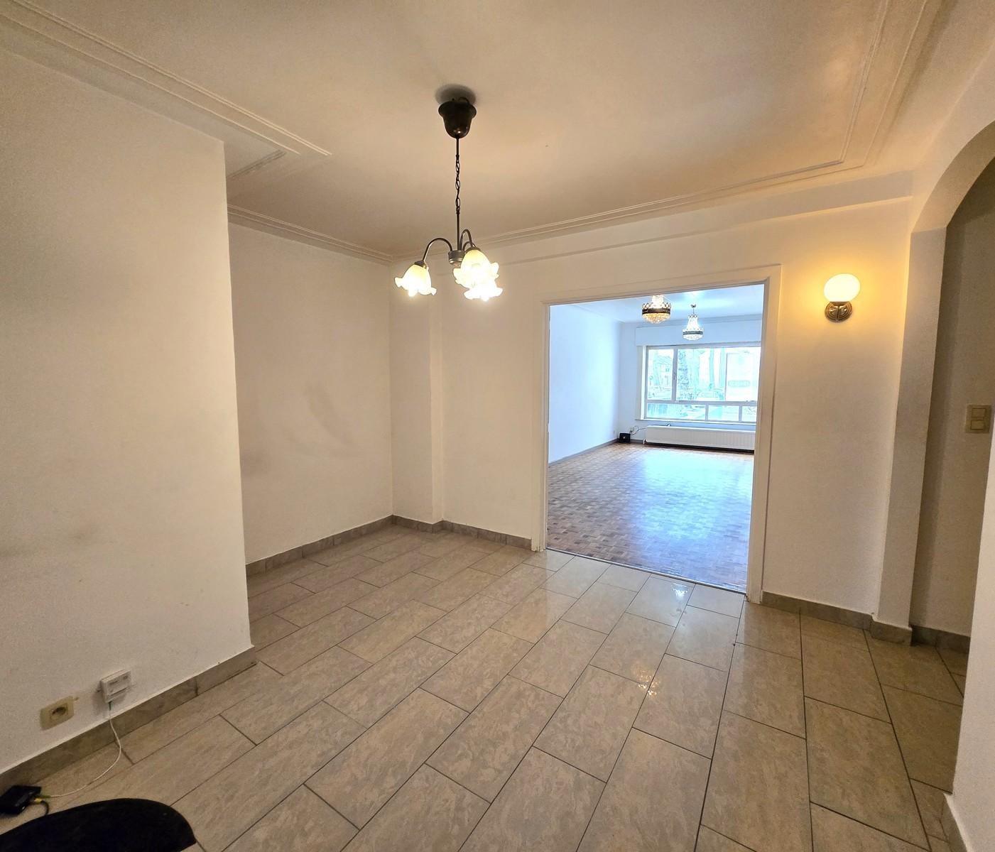 Bent u op zoek naar een gelijkvloers appartement met veel ruimte dat u volledig naar eigen smaak kunt opfrissen? Dit is uw kans! Met een woonoppervlakte van 110 m² biedt dit appartement alle mogelijkheden om uw droomwoning te creëren. Het beschikt over twee ruime slaapkamers, een groot terras aan de achterzijde waar u heerlijk kunt ontspannen, en een lichtrijke woonkamer met veel potentieel. De aparte keuken kan volledig naar wens worden ingericht, en er is een ruime kelder voor extra opbergruimte.