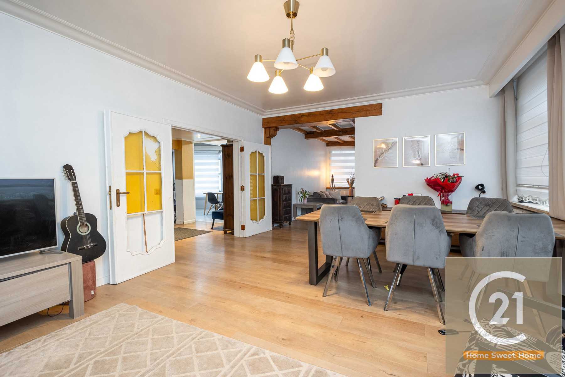 Ontdek dit uitzonderlijk ruime appartement op de eerste verdieping, ideaal voor wie op zoek is naar comfort, licht en veel leefruimte. Met zijn royale indeling en vier volwaardige slaapkamers biedt dit pand alle troeven van een echte gezinswoning, gecombineerd met het gemak van een appartement — en dat zonder gemeenschappelijke kosten. Bij het betreden van het appartement valt meteen de grote inkomhal van 17 m² op, die een aangename en open sfeer creëert. De leefruimte is verdeeld in een gezellige salon van 22 m² en een lichtrijke woonkamer van 28 m², perfect voor wie houdt van ruimte en gezelligheid. Aansluitend bevindt zich een zeer ruime keuken van maar liefst 24 m², waar voldoende plaats is voor een grote eettafel en waar koken een echt plezier wordt. Langs beide kanten van het appartement zijn er terrassen met een totale oppervlakte van 9 m², ideaal om te genieten van een kop koffie in de ochtendzon of een ontspannend moment in de avond. Dankzij de grote ramen en de doordachte indeling baadt het hele appartement in natuurlijk licht, wat zorgt voor een warme en uitnodigende leefomgeving. De ligging is nog een extra troef: het appartement bevindt zich slechts op 300 meter van het treinstation van Vilvoorde, waardoor je vlot toegang hebt tot openbaar vervoer en het centrum van Brussel in enkele minuten bereikt. Scholen, winkels en alle dagelijkse voorzieningen liggen bovendien op wandelafstand. Kortom, dit instapklare appartement biedt uitzonderlijk veel ruimte, comfort en een toplocatie — ideaal voor een groot gezin of wie op zoek is naar een aangenaam en praktisch wooncomfort in hartje Vilvoorde.